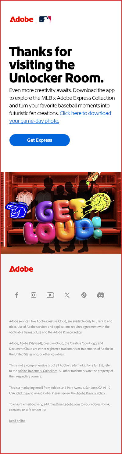 Beyond the event, we built a connected system of Adobe Express email, digital, and OLV campaigns to scale the experience. Each touchpoint reinforced fan creativity and drove continued engagement, turning a single moment into an ongoing relationship with the brand.